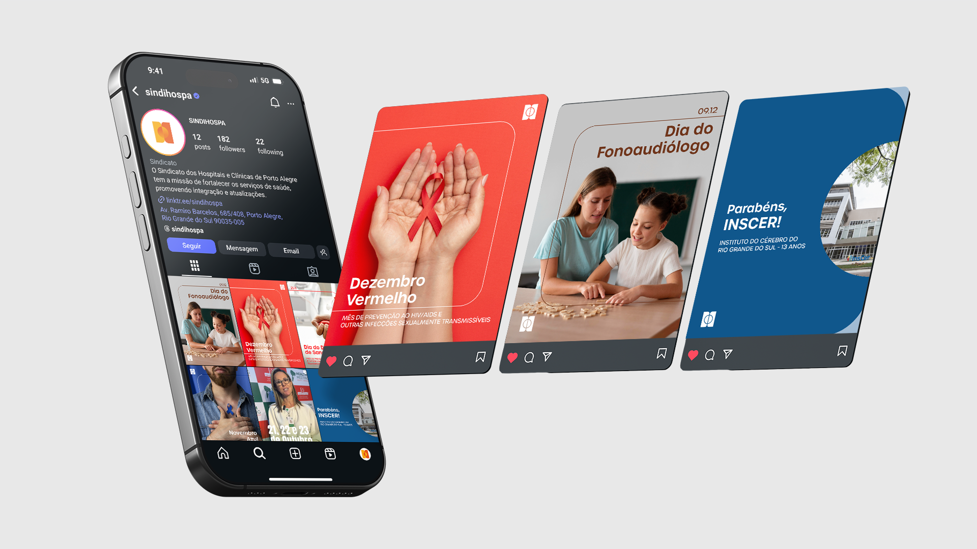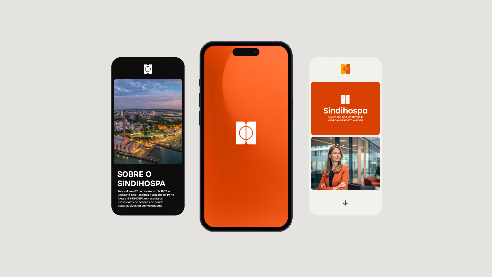 Há mais de 60 anos, o SINDIHOSPA (Sindicato dos Hospitais e Clínicas de Porto Alegre) cria conexões e fortalece todo o ecossistema de saúde através da articulação inteligente entre hospitais, clínicas, profissionais, poder público e sociedade. Nosso principal objetivo no rebranding era valorizar esse legado através de uma imagem renovada e forte, mantendo as associações positivas que a marca SINDIHOSPA possui no setor da saúde.